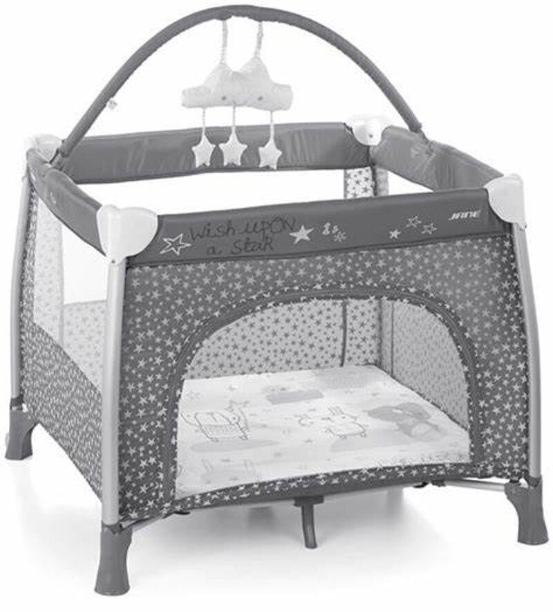 Dotato di ruote per gli spostamenti rapidi, di una comoda finestra con cerniera per un accesso più agevolato e di un archetto giochi con simpatici peluche.