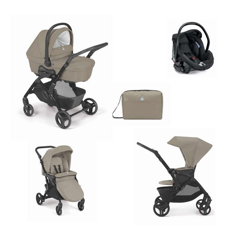 mamma 0-12 mesi e fronte strada 12-48 mesi) grazie al meccanismo brevettato Via Vai System Reverse, sistema di aggancio/sgancio rapido Quickly System di carrozzina e seggiolino auto, maniglione ergonomico e regolabile in altezza, ruote posteriori con cuscinetti a sfera in metallo facilmente removibili, ruote anteriori piroettanti con sistema di blocco/sblocco, freno sincronizzato, morbide sospensioni anteriori e posteriori, schienale regolabile in 4 posizioni con una sola mano, poggiapiedi regolabile, davantino removibile, cinghia a 5 punti, ampio cestino con pratico sistema di apertura. Chiusura a libro compatta con la seduta in entrambe le posizioni di marcia, con maniglia da trasporto.