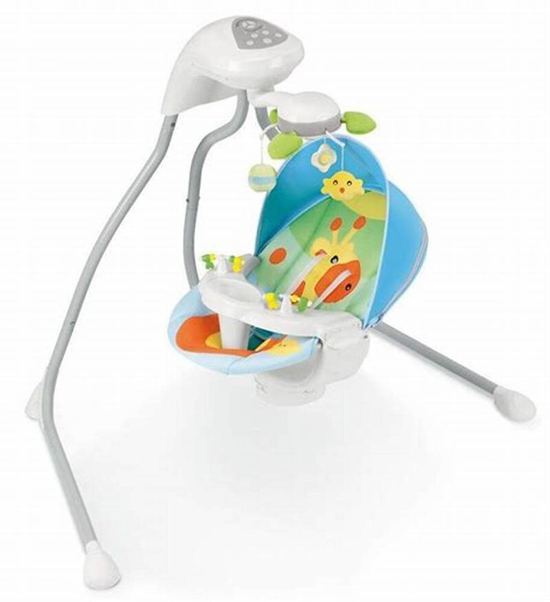 Altalena Cam dotata di seduta girevole, giostrina e musica, per bambini da 0 fino a 9 kg. Ricca di optional, è provvista di capottina removibile, schienale regolabile in 2 posizioni, cinghia a 5 punti e divertente giostrina direzionabile con morbidi peluches removibili.