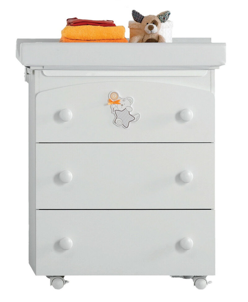 Dotato di 3 ampi cassetti in cui potrete sistemare tutto il corredino del tuo bebè, impreziosita da un'applicazione con orsetto e stellina.