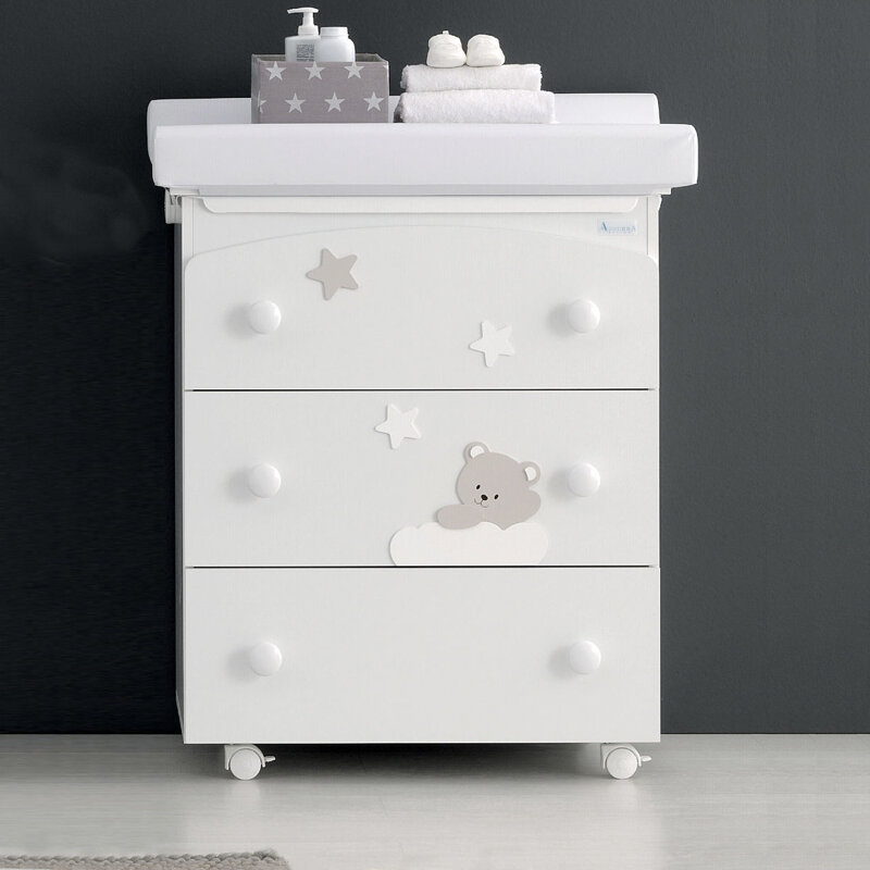 Cassettiera con 3 cassetti Azzurra Design con vaschetta anatomica e morbido materassino fasciatoio in PVC decorato.