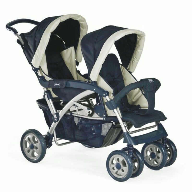 Infatti offre due confortevoli sedute con schienalini reclinabili in modo indipendente.E' inoltre dotato di serie di due cappottine, parapioggia, coprigambe e cestello portaoggetti.